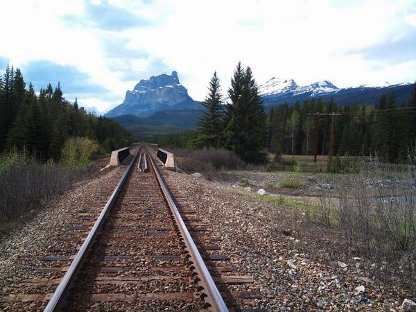 ![]() | Mile 57 Laggan Subdivision railway bridge crossing over Exshaw Creek looking north at Heart Mountain |